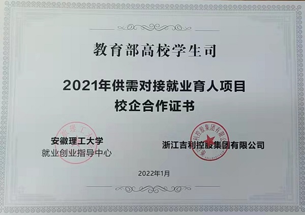 为促进高校毕业生更加充分更高质量就业,帮助用人单位培养和招聘更多实用型、复合型和紧缺型人才,推动培养就业有机联动、人才供需有效对接,教育部高校学生司实施了2021年供需对接就业育人项目。经前期多轮洽谈、对接和申报,我校与浙江吉利控股集团有限公司就业育人项目成功入选。