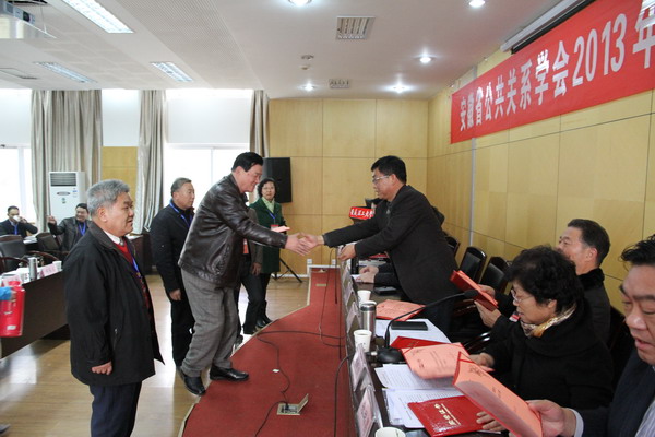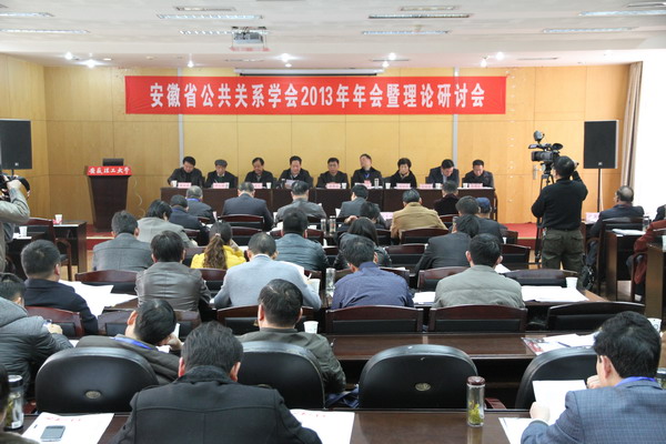 为深入学习、开展“党的群众路线教育实践活动”,安徽省公共关系学会于12月7日、8日在我校召开2013年年会暨“公共关系与群众路线”理论研讨会。校党委书记颜事龙,淮南市政府金融办主任张瑞昌,淮南市田家庵区常务副区长芮耀宏,蚌埠市公共关系学会会长、原蚌埠市政协主席郑大发,省哲学学会会长、原省委政策研究室主任谢道文,省马克思主义哲学应用学会会长、合肥工业大学出版社总编辑钟玉海,省公共关系学会副会长兼秘书长、安徽大学教授郑明珍,省公共关系学会副会长、安徽农业大学教授黄洪雷等领导、专家出席会议并在主席台就座。会议由黄洪雷主持。