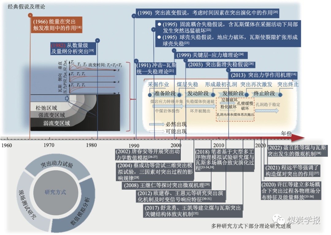 煤与瓦斯突出机理代表性假说及理论化研究的相关研究历史进程