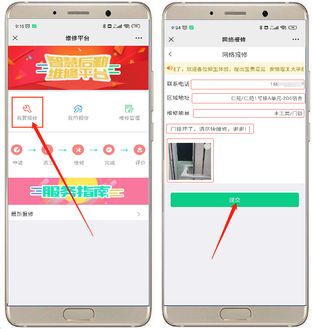 为方便全校师生报修,提升校园维修服务质量和响应速度,经过总务部精心准备,校园智能报修系统于6月21日上午上线试运行啦!
