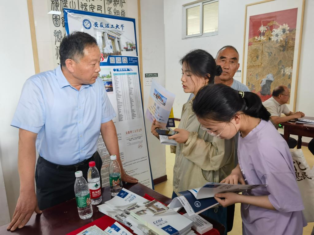 在宿州地区宣讲会上,宫能平对支持我校招生工作,为我校输送了大量优质生源的学校表示感谢。他介绍了学校发展历史、办学特色、学科建设、人才培养和就业创业等方面取得的成就,结合招生政策,详细介绍了2023年高考预估录取分数段和全省排名位次。宣讲会后,宫能平前往招生咨询现场,面对面地解答学生和家长关于预估分数、专项和统招、专业方向、转专业和奖助政策等方面的问题,并邀请更多优秀的学生报考安徽理工大学,共创美好未来。