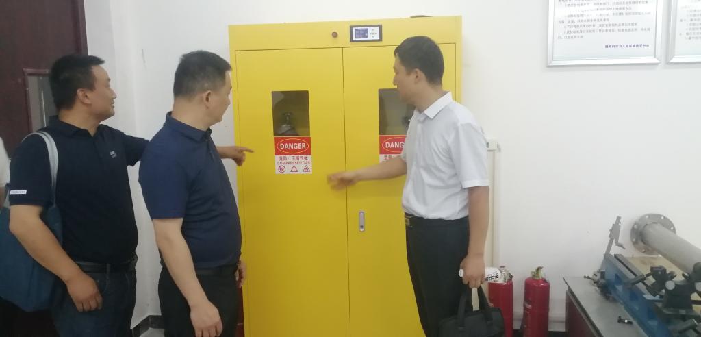 检查组一行实地检查了化学工程学院危险化学品仓库和部分科研、教学实验室,就实验室安全管理相关制度的落实、危险化学品存储和领用、特种设备管理、应急设备和消防设施的状况等方面进行了检查和询问,并现场指出一些实验室存在的安全管理问题。现场检查后,检查组专家与学校部分实验室管理人员、学校实验室安全督导员进行了座谈和交流。