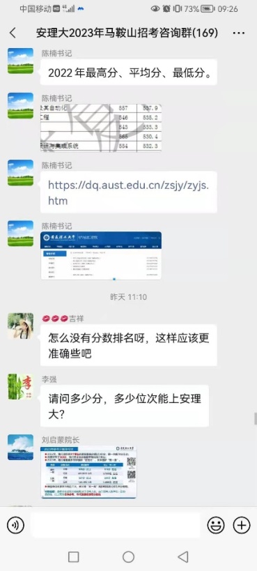 在招生宣传工作中,为进一步加强与考生、家长的互动,让他们充分了解学校发展情况、掌握相关政策,从而喜爱学校、填报学校,招生宣传组采取了系列特色做法,形成了“线上+线下”“校内+校外”的宣传模式。通过建立马鞍山招考咨询群以及每晚8点持续开展腾讯会议线上咨询等方式,及时解答考生和家长的疑问,同时建立校内在读马鞍山籍校友群,分享学校最新发展成果及招生政策,鼓励他们分享到朋友圈中,扩大宣传途径与群体,取得了“学生宣传学生”的良好氛围,吸引了众多高分考生在群内咨询并达成初步报考意向,为更多学子圆梦成才搭建了更好的平台。
