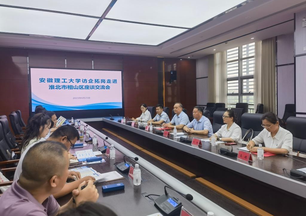 相山区经信局、人社局、开发区相关负责人参加座谈会,并介绍了人才引进政策等。淮北翌光科技有限公司、安徽深淮集成电路有限公司、淮北鸿佑光电科技有限公司、淮北普浩集成电路有限公司、淮北今麦郎饮品股份有限公司、淮北民生矿山机器有限公司等6家企业的负责人参加座谈会,分别介绍了公司人才需求情况、技术研发需求等,期待与学校进行深入合作。
