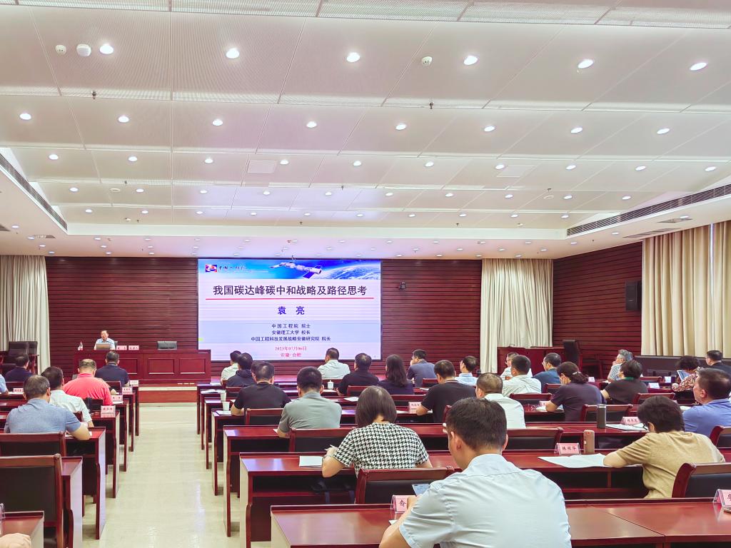 7月6日上午,校党委副书记、校长袁亮院士走进中共安徽省委党校(安徽行政学院),以“我国碳达峰碳中和战略及路径思考”为题为福建省新兴产业发展与招商引资专题班作专题辅导报告。福建省委党校副校长顾越利主持报告会。安徽省委党校副校长潘理权出席会议。