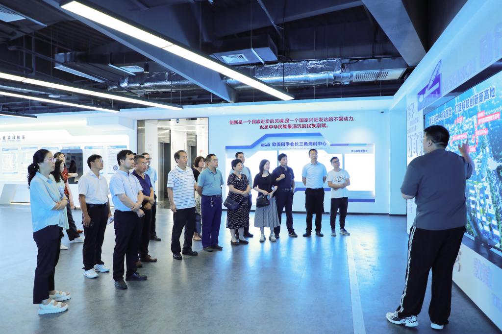 在海创中心,通过听取介绍、实地走访、座谈交流等方式,大家详细了解了海创中心的功能定位、规划布局、管理运营、周边配套设施以及留学人员创办企业的科技研发、市场开拓、运营管理等方面情况。目前海创中心一期已建成投用,全球路演中心、共享展厅、办公区、会议区等设施正式投入使用,入驻留学人员高科技产业项目45个、高层次留学人才130多人,有效知识产权720多项,储备留学人才项目300多个,2022年帮助留学人员项目融资1亿多元人民币,已成为欧美同学会服务留学人员创新创业的重要平台载体。