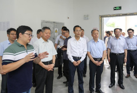 在大学科技园,张志强、郭永存、袁亮等首先实地察看了安徽纬培矿山科技有限责任公司、淮南赤阳智能精选科技有限公司、华昇智能(安徽)设备有限公司、安徽神东生物科技开发有限责任公司等四家入驻企业,听取了企业负责人科技成果产业化、企业运营等情况介绍。