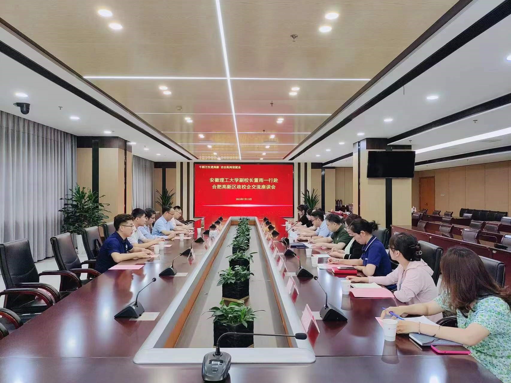 座谈会上,董雨向科大智能电气技术有限公司、安徽继远软件有限公司、安徽清新互联信息科技有限公司、安徽中科昊音智能科技有限公司、安徽兆尹信息科技股份有限公司、润宇科技有限公司等合肥高新区重点企业,介绍学校历史沿革、师资队伍、教学科研、学科建设、人才培养、学生竞赛、社会服务等情况。他强调,学校围绕人才培养根本任务,主动服务地方经济发展,不断提高人才培养质量,安理大学子务实、勤奋、创新能力强、综合素质高,得到用人单位的一致认可和好评。期待校企双方能开展深入合作,充分发挥双方优势,从而实现校企双方双向提升、共同发展、合作共赢的愿景。学校邀请合肥高新区来学校开展2024届毕业生招聘工作。
