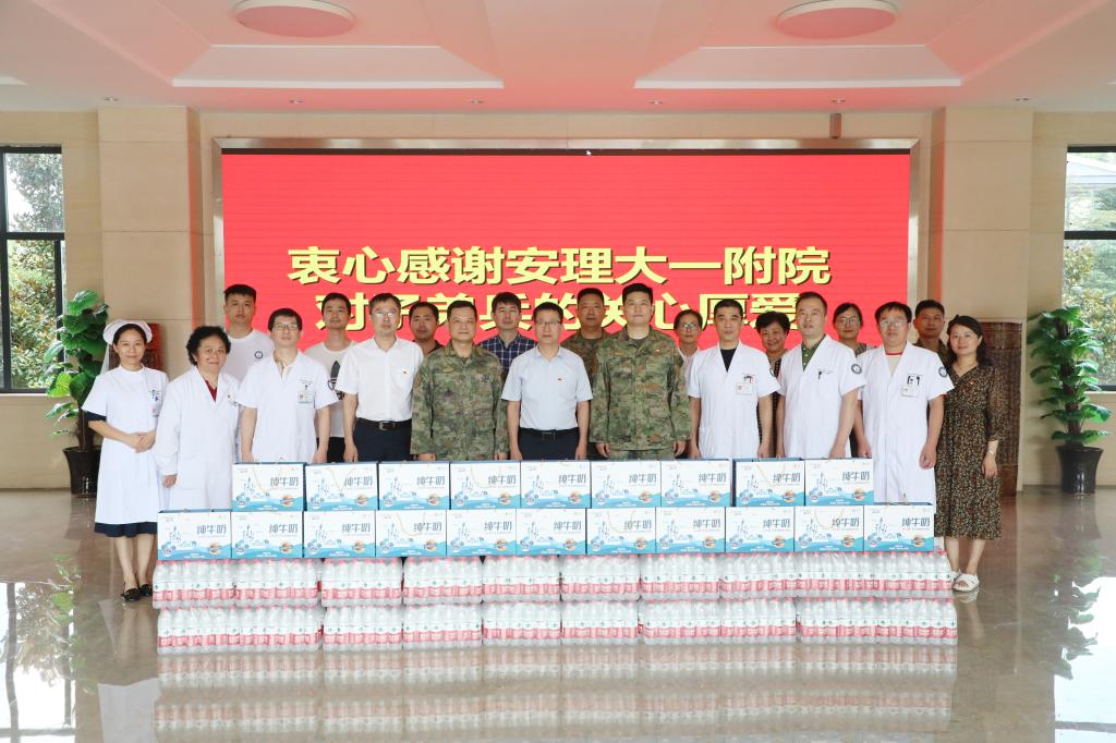 7月31日,“八一”建军节来临之际,校第一附院组织专家小分队前往淮南市军分区,对官兵进行义诊义检,为部队官兵送去健康服务、人文关怀,向他们致以节日问候和崇高敬意,并送上慰问物资。