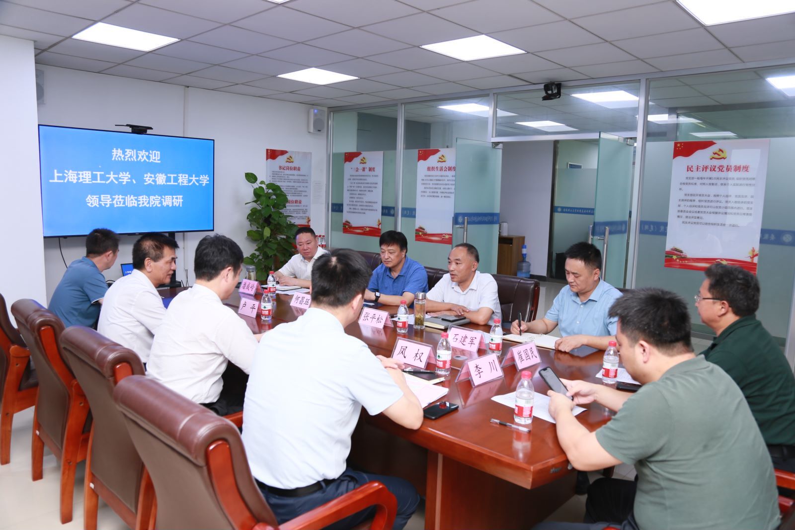 上海理工大学办公室、研究生院、跨学科创新研究院,安徽工程大学研究生部(学科办)、科技处,芜湖市科技局相关负责同志,芜湖研究院相关负责人参加座谈会。