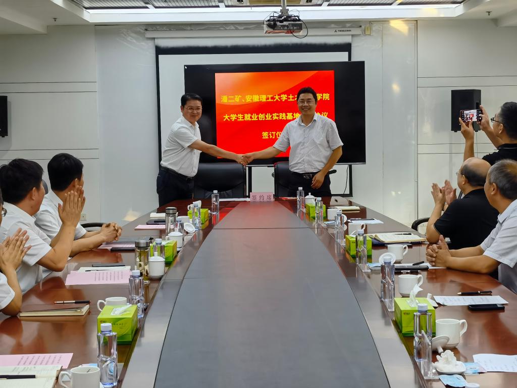 9月7日下午,校党委常委、副校长王先江带领土木建筑学院领导班子成员实地走访潘二煤矿,签订大学生就业创业实践基地合作协议,看望校友并与潘二煤矿领导班子成员进行座谈交流。