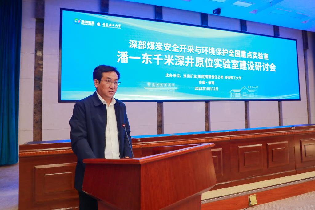为充分发挥千米深井“中国地眼”作用,加快推进深部煤炭安全开采与环境保护全国重点实验室建设,10月12日上午,潘一东千米深井原位实验室建设研讨会在淮南煤矿宾馆会议中心1号会议室隆重举行。校党委副书记、校长、全国重点实验室主任袁亮院士,淮河能源控股集团党委委员、副总经理、淮南矿业集团党委副书记、总经理韩家章,来自北京大学、中国科学技术大学、上海交通大学等32所著名校企科研院(所)的专家学者出席会议。校党委常委、副校长张平松主持会议。