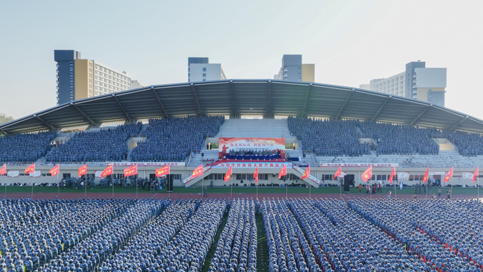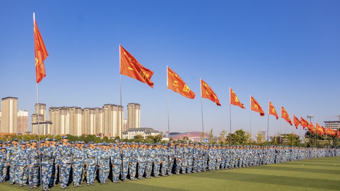 10月21日上午,学校在至诚体育场举行2023级学生军训成果汇报暨总结表彰大会,参训学员身着戎装,向军训这堂“大学必修课”,提交了一份满意的答卷。校党委常委、副校长、校军训工作领导组副组长宫能平、董雨、王先江,承训部队驻校首长出席大会。校党委武装部部长方运纪主持会议。