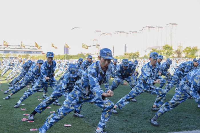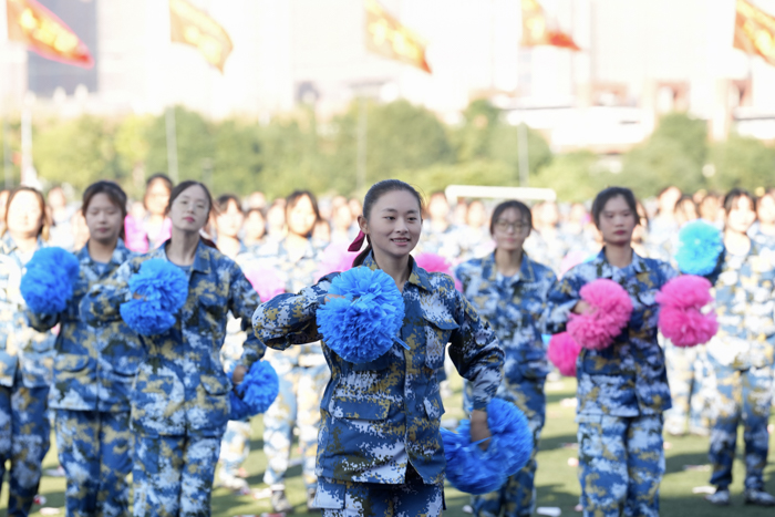 伴随着雄壮的阅兵进行曲,20个军训团方阵在国旗、校旗方队的引领下,迈着矫健的步伐,喊着嘹亮的口号,依次通过主席台接受检阅,展示军训刻苦训练取得的骄人成果。同学们目光坚毅、英姿飒爽,充分展现了新时代安理人的团结奋进、自信阳刚,展示了“青春有为,强国有我”的坚定信念。随后的军体拳、匕首操、格斗术等表演,刚劲有力、威武英气,诠释了安理学子刚健勇毅的热血青春;韵律操表演,活力四射、朝气蓬勃,展现了安理学子昂扬向上的精神风貌;大合唱《歌唱祖国》,声振林木、响遏行云,唱出了安理学子浓厚挚烈的爱国情怀。