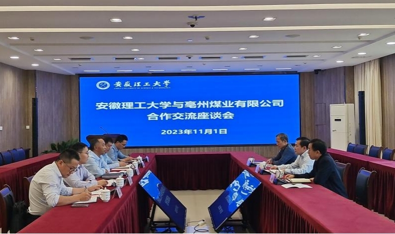 11月1日下午,亳州煤业有限公司党委书记、董事长李庆军一行4人来校开展合作调研,校企双方在学校西配楼二楼会议室举行了合作交流座谈。校党委常委、副校长张平松出席并主持座谈会。