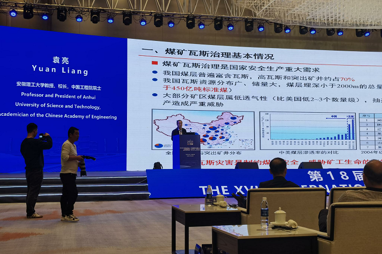 大会主旨报告环节,薛生教授代表校长袁亮院士作了题为“煤炭开发中瓦斯(甲烷)减排与低碳利用对策”的主旨报告,重点介绍了我国煤矿瓦斯治理基本情况,瓦斯减排利用技术和瓦斯排放监测技术,指明了煤矿甲烷减排监测发展方向。