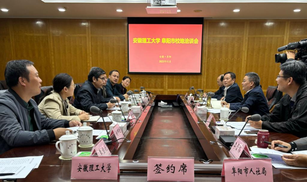 董雨介绍了学校的历史沿革、学科特色、人才培养、毕业生就业及科研创新成果。他指出,阜阳市作为我省人口大市,国家战略在此交汇叠加,工业发展迅速,产业发展需求与安徽理工大学学科专业契合度高,希望校地双方找准契合点,在人才培养、大学生就业、实习实践等多领域开展深化合作,为皖北振兴贡献力量。
