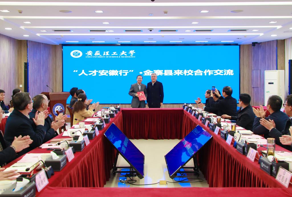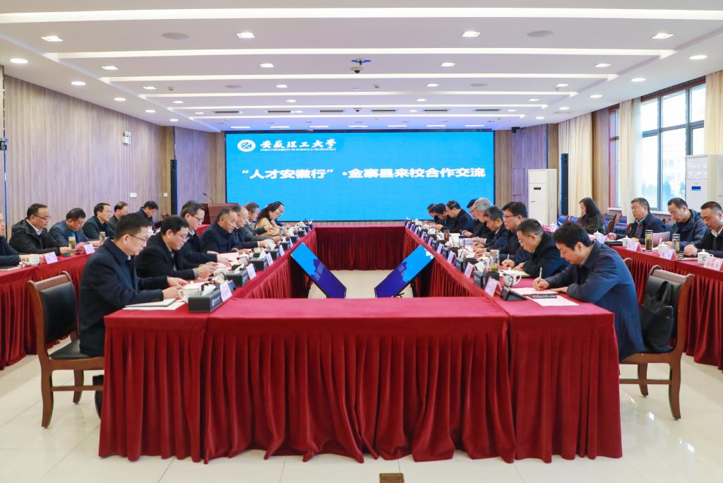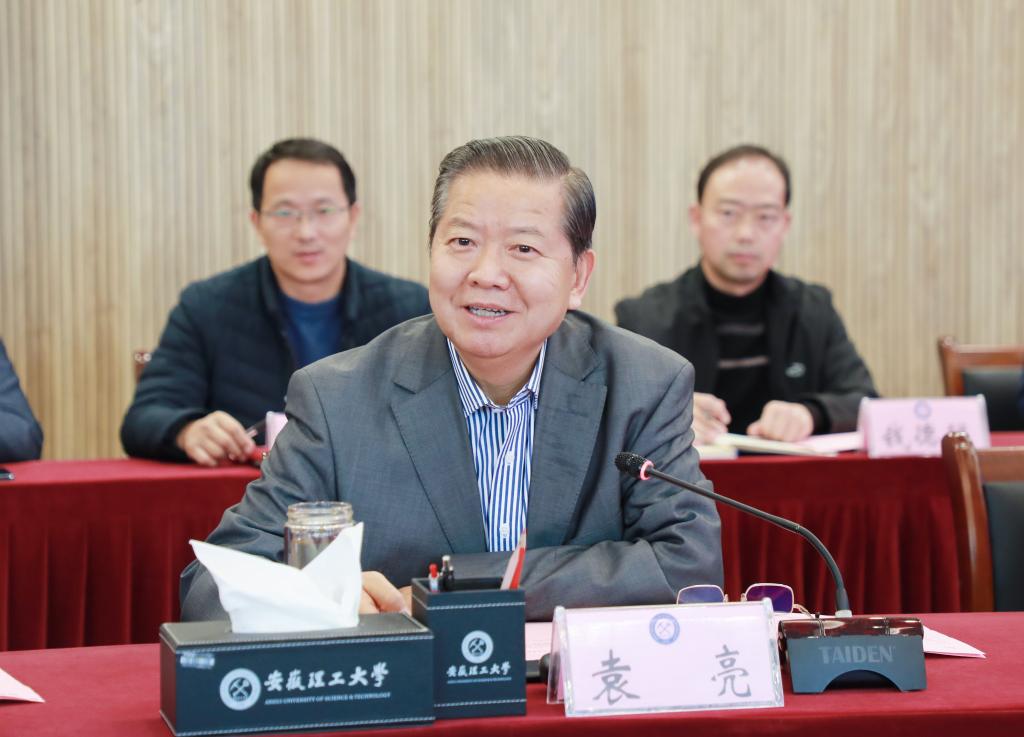 袁亮介绍了学校78年来在党的正确领导下,坚持扎根江淮大地办大学,服务国家能源建设和经济社会发展情况。他指出,学校拥有深厚的革命底色,突出的工科特色,鲜明的发展亮色,特别是近年来,学校在习近平新时代中国特色社会主义思想的科学指引下,赓续重点大学基因,传承自信自强传统,锚定创建“世界一流学科和国内一流特色高水平大学”战略目标,统筹淮南、合肥两地发展,深入践行“三有”“三进”“三到”办学理念,推深做实“四个融入”发展战略,推进学科专业优化调整,服务十大新兴产业发展,为打造“三地一区”、建设“七个强省”贡献安理力量。他表示,学校愿发挥学科专业特长和人才资源优势,深度对接金寨产业、人才、文化、生态、健康需求,赋能老区发展、造福老区人民。