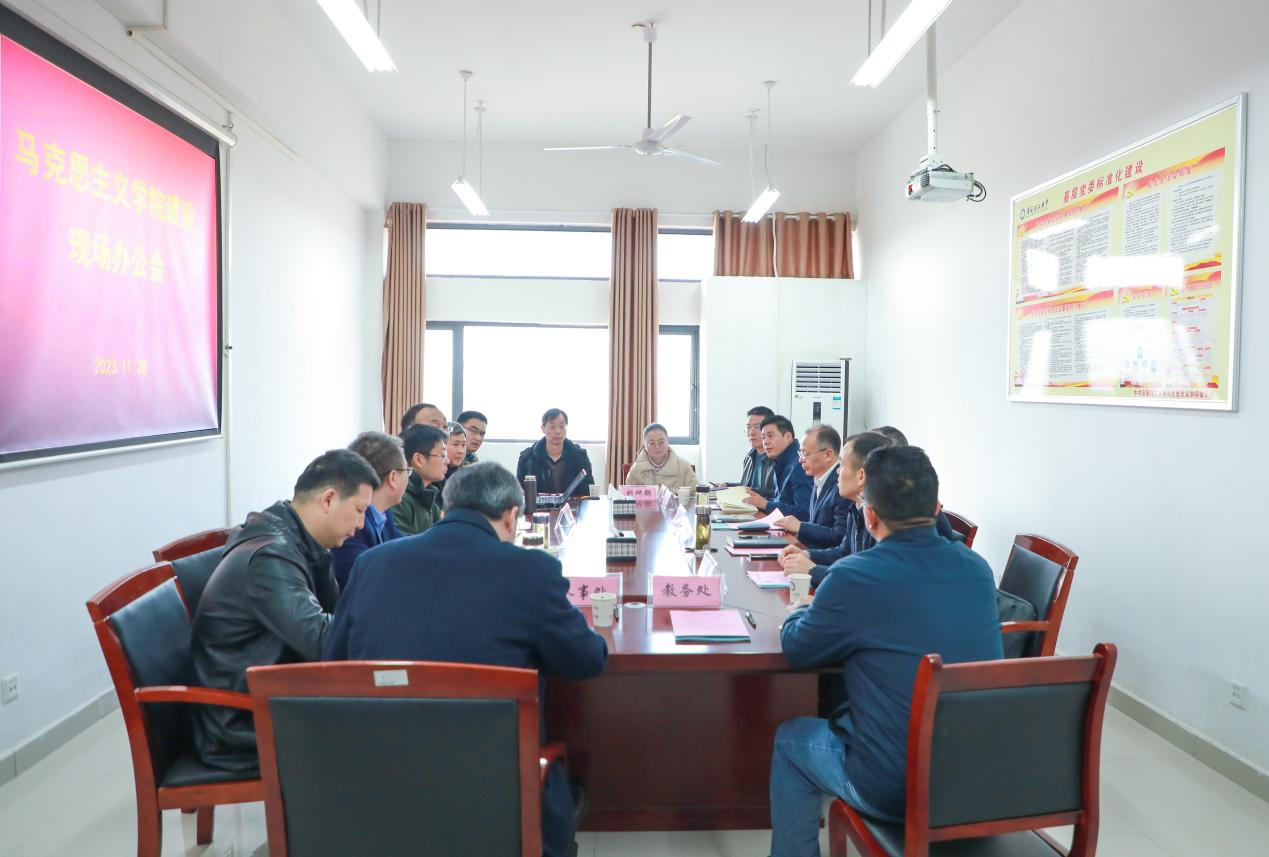 11月28日上午,校党委书记郭永存主持召开马克思主义学院现场办公会,听取学院工作汇报,就推动学院高质量发展提出解决思路和路径举措。校党委常委、副校长张平松陪同。