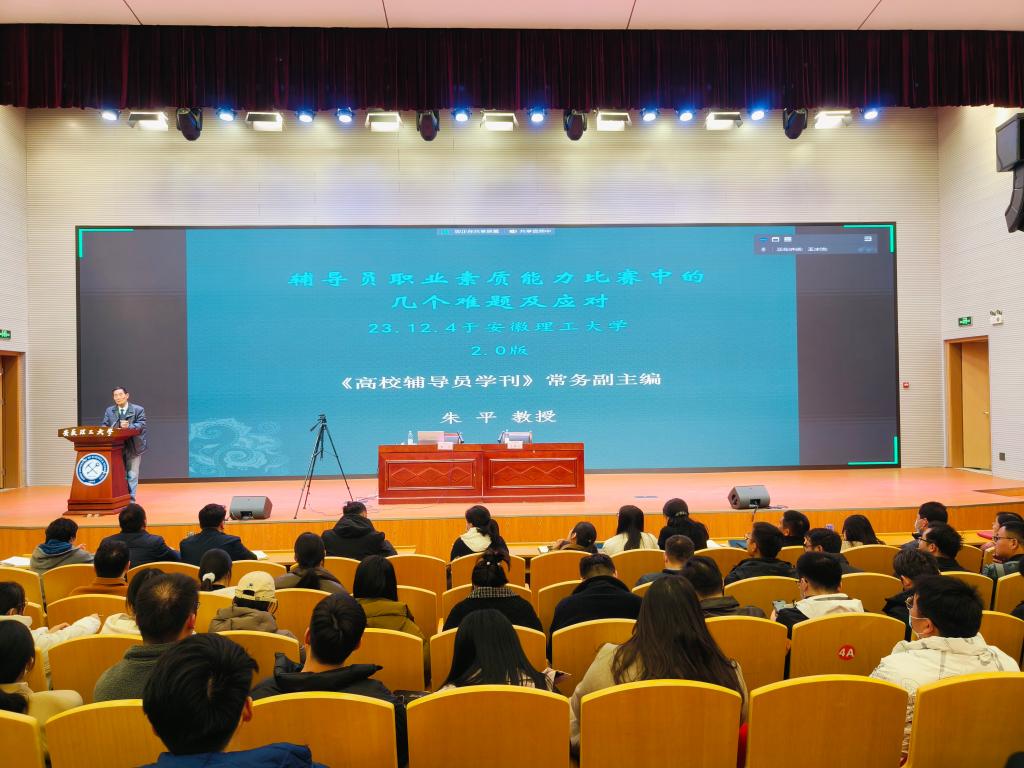 为深入学习贯彻习近平新时代中国特色社会主义思想,落实立德树人根本任务,不断提升我校辅导员队伍的理论水平、专业素养和业务能力,12月4日下午,学校邀请《高校辅导员学刊》常务副主编朱平教授,在舜耕会堂作辅导员素质能力提升专题讲座。会前,校党委常委、副校长董雨会见了朱平教授。全体学工干部近200人通过线上线下相结合的方式听取了讲座。