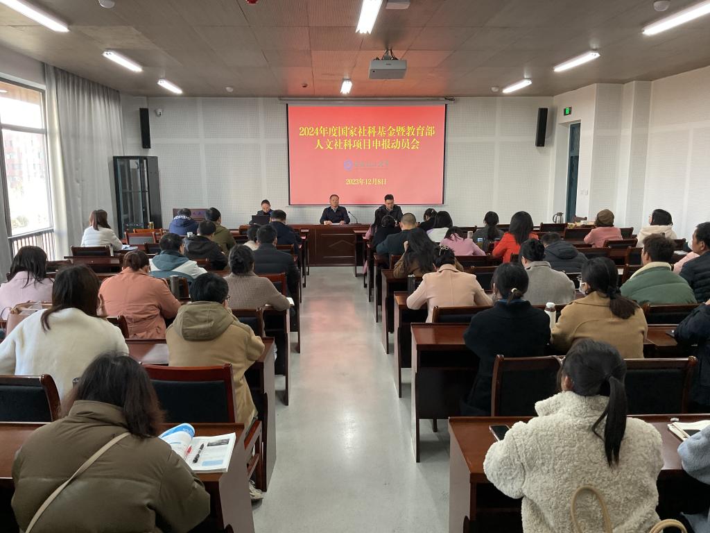 学校各社科学院(部)、社科科研平台(重点实验室)负责人、科研秘书、科研骨干、近五年新进博士教师及拟申报2024年国家社科基金或教育部人文社科项目的教师60余人参加了动员会。