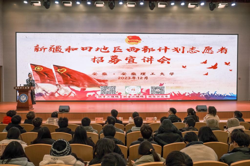 为积极践行学校“三到”办学理念,进一步做好2024届西部计划的宣传动员、招募选拔工作,12月19日上午,新疆和田地区西部计划志愿者专场招募宣讲会在舜耕会堂举办。新疆和田地区团委副书记、青联主席付正龙一行与我校500多名师生面对面,开展了一场生动精彩的招募宣讲活动。