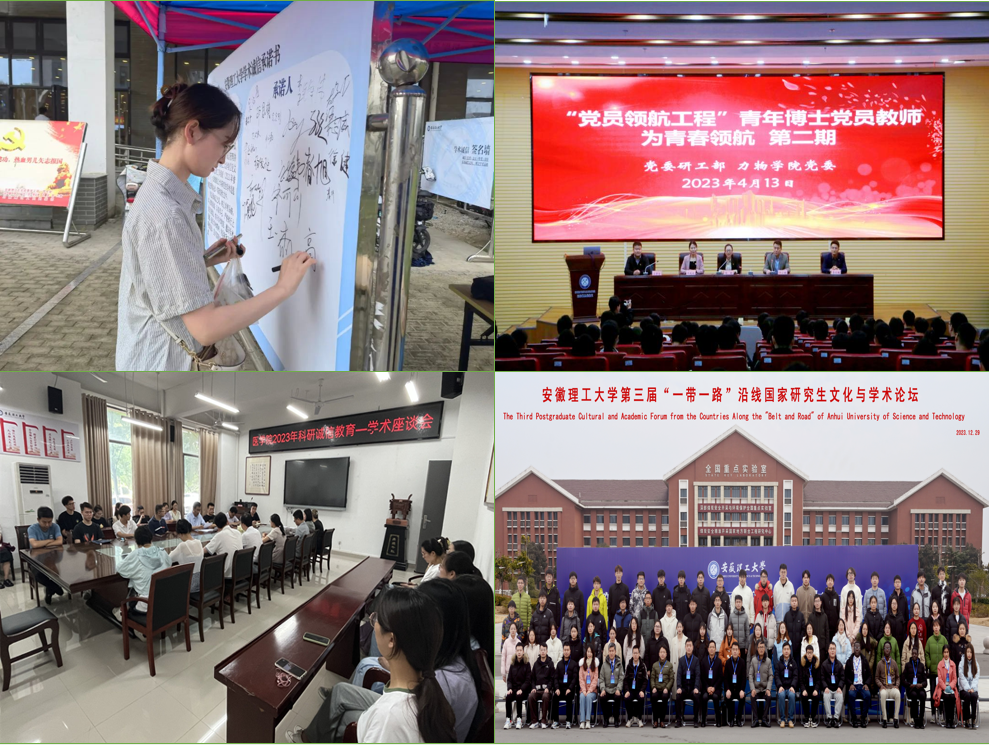 一年来,学校将立德树人贯穿研究生教育的全过程,汇聚导师、辅导员与研究生党支部育人合力,构建“思政课程+课程思政+导学思政+智慧思政”四位一体的研究生思想政治教育模式。立项建设研究生课程思政示范课程10门,配齐建强研究生辅导员队伍,开展专题培训14次;拓展育人途径,筑牢研究生教育意识形态阵地,充分发挥“安理研究生”等新媒体育人功能,全年发文229篇。