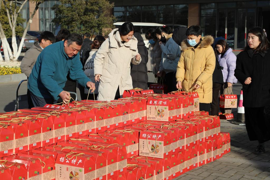 1月9日,在春节来临之际,学校将乡村振兴消费帮扶与教职工春节福利发放有机结合,将从定点帮扶的谢家集区汤王村和高新区三和镇新华村采购的大米、杂粮、香菇等41万余元的绿色农产品发放给教职工,向教职工致以春节的问候和祝福。