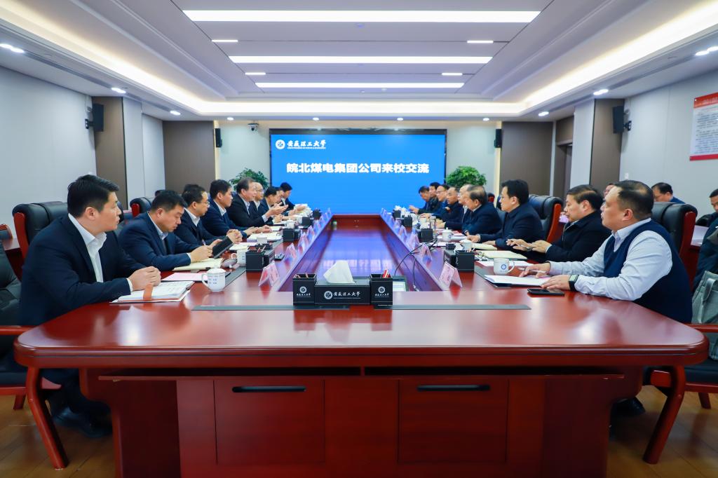 皖北煤电集团有限责任公司相关部门及下属单位负责人,学校党政办公室、党委组织部、就业创业指导中心、研究生院、科研部、地球与环境学院、安全科学与工程学院、矿业工程学院、机电工程学院、材料科学与工程学院、化工与爆破学院负责人参加交流。