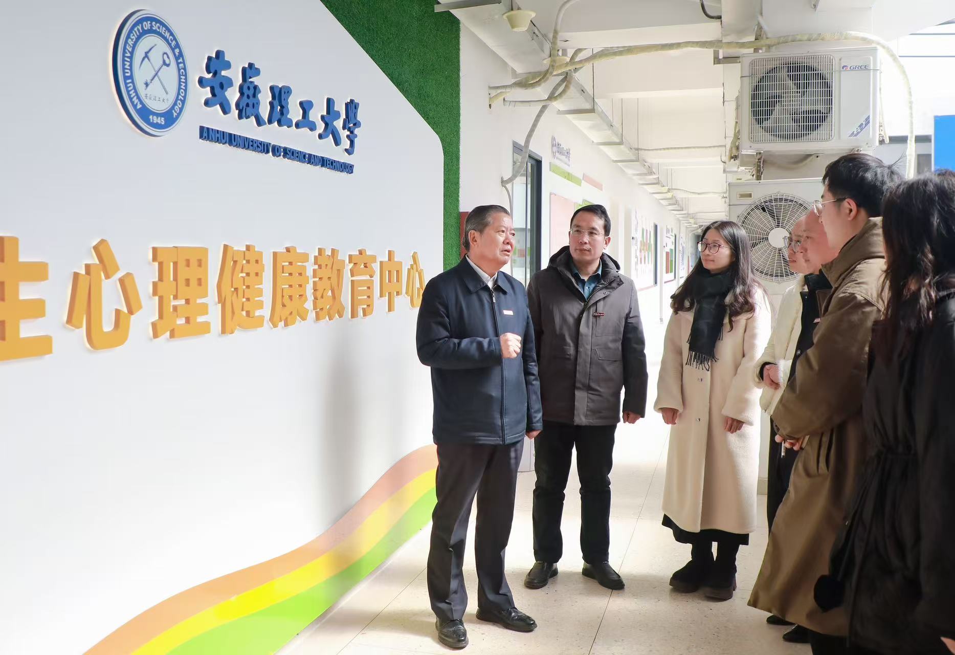 在学校学生心理健康教育中心,袁亮与中心工作人员亲切交谈,听取了中心负责同志的工作汇报,对升级改造后焕然一新的18间功能室表示肯定。他强调,学生心理健康教育工作要全面贯彻落实党的二十大和二十届二中、三中全会精神,深入落实《教育部等十七部门关于印发〈全面加强和改进新时代学生心理健康工作专项行动计划(2023-2025年)>的通知》《中共安徽省委教育工委安徽省教育厅等十七部门关于印发〈全面加强和改进新时代学生心理健康工作的若干举措>的通知》等,拉高标杆,主动作为,发挥学校特色优势,争创全国一流;心理健康教育工作要向基层延伸,在建好校级中心的同时也要发挥好学院心理辅导站的作用,打造好五级心理防护体系,构建好“四位一体”心理健康工作格局;要加强心理健康教育专兼职队伍建设,新入职的专职心理健康教师要尽快熟悉工作要求,更好融入学校,为学生提供专业化的心理咨询服务;心理健康教育要聚集家校医社多方合力,携手守护学生心理健康。