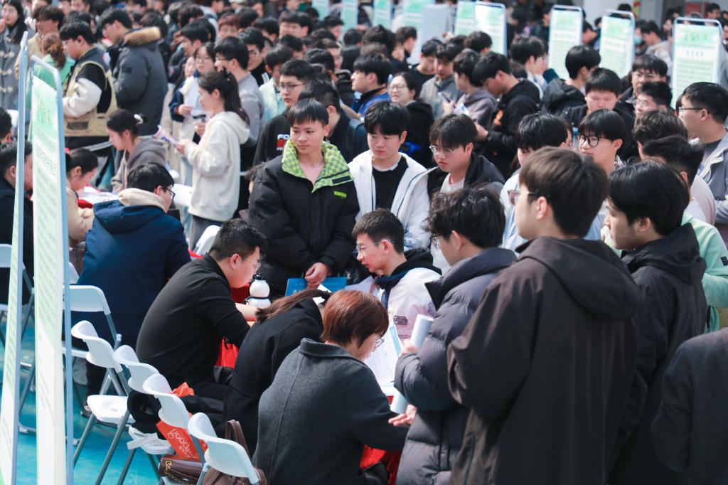 在招聘会现场,陈明生、郭永存与用人单位和求职学生亲切交谈,详细了解学生的求职意向和用人单位的招聘条件,听取用人单位对学校人才培养、专业建设、实习就业等方面的意见和建议;鼓励求职学生要把握求职机会,做好自我评估,努力提高求职应聘的成功率。招聘会现场气氛热烈,供需两旺,毕业生们积极投递简历,主动与企业代表交流,了解用人单位情况。各用人单位向应聘者详细介绍单位的岗位职责、薪资福利、晋升空间等情况,并与毕业生就未来职业规划与行业前景开展积极沟通。招聘会现场还设置了“简历义诊”、在线就业咨询、大学生志愿服务西部计划宣讲等,为参会学子提供一站式就业咨询服务。