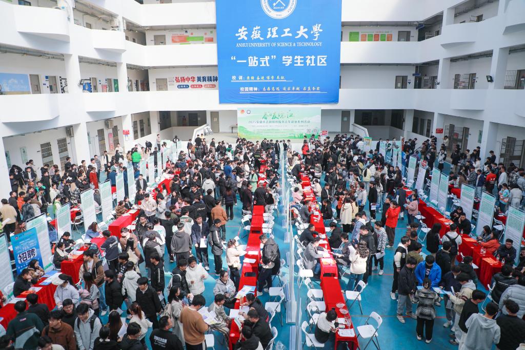 本次招聘会由共青团安徽省委员会、安徽省人民政府台湾事务办公室、安徽省教育厅、安徽省人力资源和社会保障厅联合主办,安徽理工大学承办,安徽青年报社、共青团淮南市委员会、安徽省青年企业家协会协办。本场活动线下招聘会共有115家优质单位报名参与,来自新能源、新材料、绿色环保、生物医药、新一代信息技术、建筑机电、文化传媒等多个行业,提供1611个就业岗位,2000余名大学生参加招聘会;线上网络招聘会共有671家企业,提供了11596个就业岗位供学生选择。据不完全统计,现场参会企业共收集简历超过2130余份、初步达成就业意向486人。