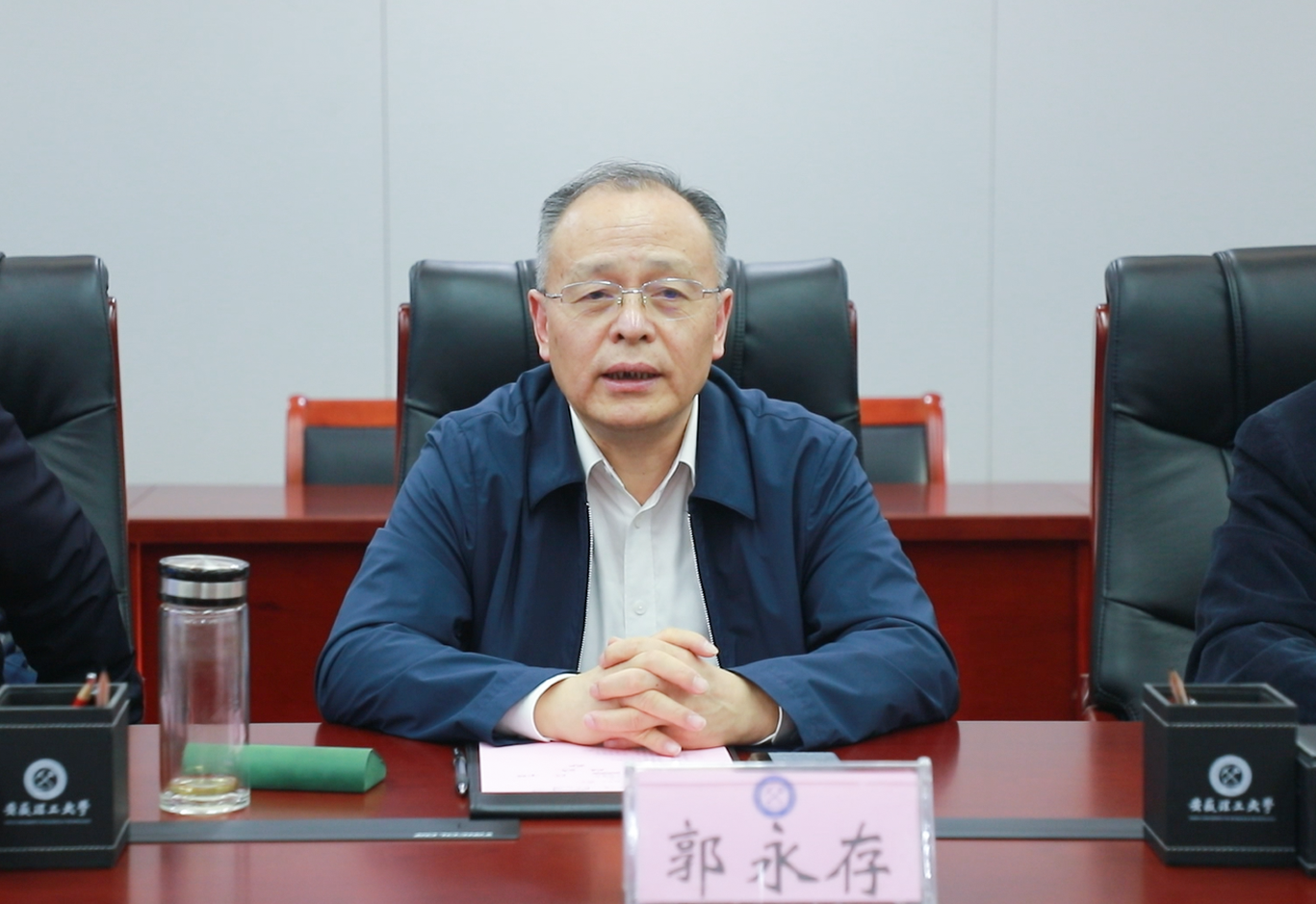 郭永存对卢平、黄友锐一行来校调研交流表示欢迎。他表示,安徽工程大学是一所以工为主的省属多科性高等院校,办学历史悠久,优势特色显著,学生创新创业、省内科研成绩突出,值得学习借鉴,希望进一步深化合作交流,促进双方共同发展。