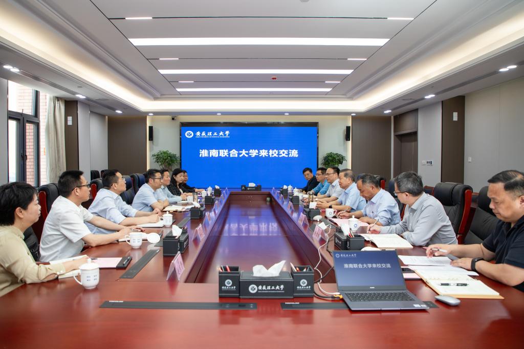 袁亮对刘银一行来校交流表示欢迎。他介绍了学校锚定“双一流”创建目标、推深做实“四个融入”战略等方面的具体举措和标志性成果。他表示,要找准学校发展定位,持续优化学科布局,紧紧聚焦新质生产力发展需求,精准服务区域产业转型升级。他希望两校以此次交流为契机,深化互学互鉴,在人才培养、科研合作、就业创业等多领域探索合作路径,共同为淮南地区高等教育发展注入新动能。