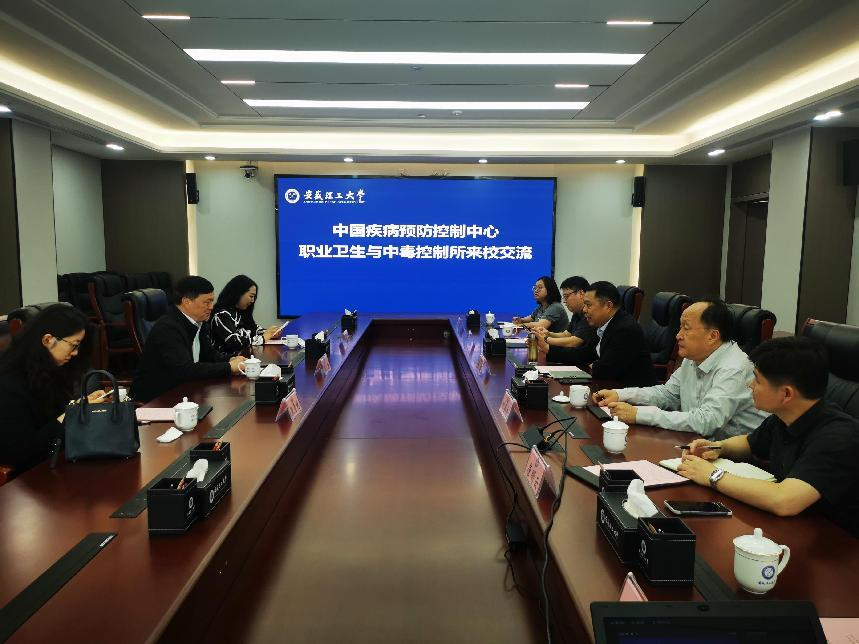5月7日下午,中国疾病预防控制中心职业卫生与中毒控制所所长孙新一行来校交流,座谈会在党委办公楼213会议室举行,校党委常委、副校长鲁超出席会议。