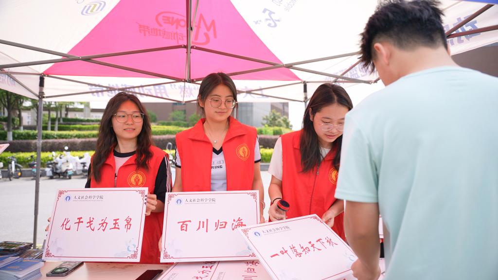 五月的校园,榴花似火,阳光明媚。5月18日,在学校仰山广场和耕心楼南广场,“一站式”学生社区文化嘉年华如火如荼地进行着。二十四节气缎带书签随风摇曳,紫金石砚台在阳光下闪耀温润光芒,四大类文化主题,二十三个展位,三千余名师生共襄盛举,编织了一场精彩纷呈的文化盛宴。