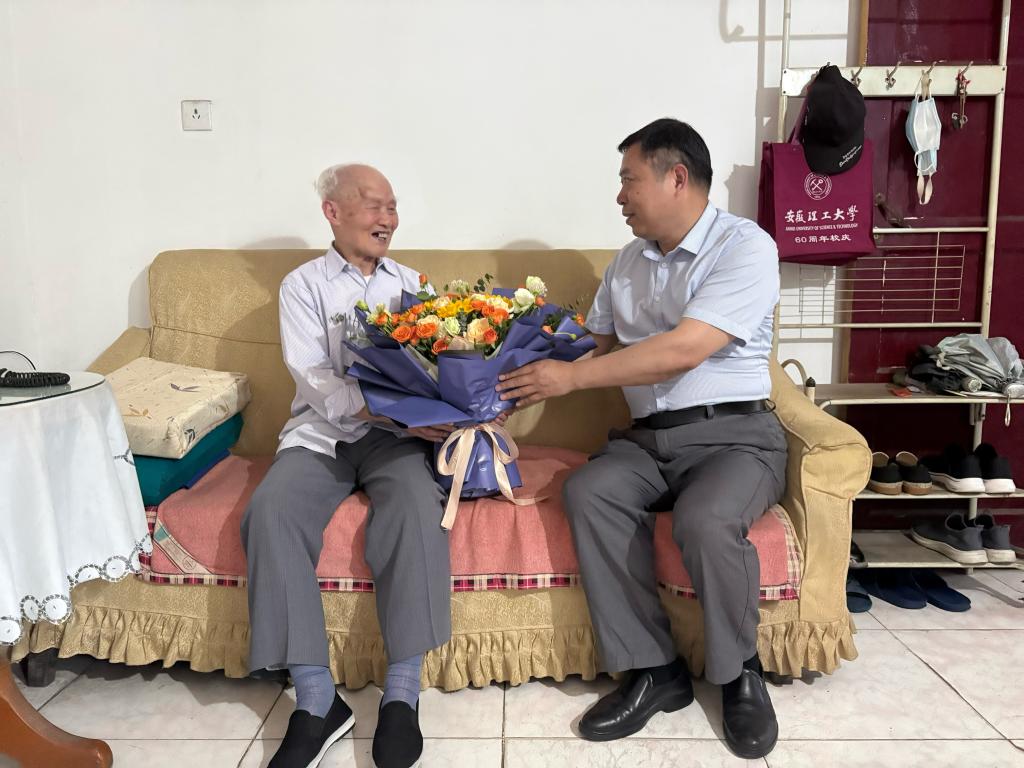 离退休工作处组织工作人员走访慰问了其余在淮离休干部,为他们送去慰问品和节日祝福,确保将学校的温暖送到每一位老同志家中。