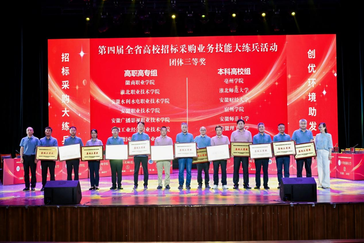 5月29日,由安徽省教育厅、安徽省发展改革委、安徽省财政厅联合主办的第四届全省高校招标采购业务技能大练兵活动决赛在安徽艺术学院举行。我校代表队在此次大练兵活动决赛中荣获本科组团体三等奖。