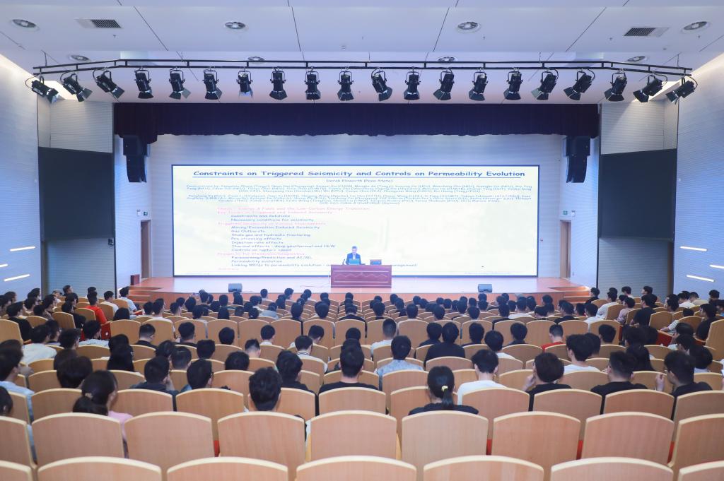 会前,Derek Elsworth院士在舜耕会堂为安全科学与工程学院、矿业工程学院等学院200余名师生作了题为《地震诱发条件与渗透率演化控制机制》的学术报告。