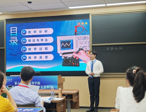 学校高度重视此项竞赛,精心组织比赛,为参赛选手优化教学设计、打磨课件内容等方面提供多方位指导。参赛选手认真准备,精心组织教学内容,不断完善,通过课程导入、原理分析、电路设计、前沿应用等环节娓娓道来,在比赛中充分展示了追求卓越的良好风貌,取得了优异的成绩,全面展示了我校青年教师的教学风采和扎实的教学功底。