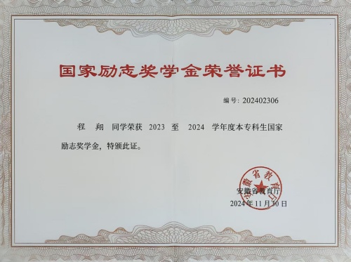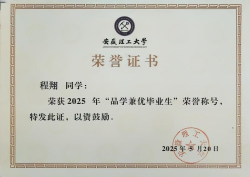 四年如一日的不懈努力,最终化为优异的学业成果,在校期间,多次获校级优秀学生奖学金和“三好学生”荣誉称号,获校“创新、创意、创业”大赛及“互联网+”大赛三等奖,大三获国家励志奖学金并成为了一名光荣的中国共产党党员,大四成功考取合肥工业大学电气工程专业硕士研究生。毕业时,凭借四年优异表现,获评校“品学兼优毕业生”。