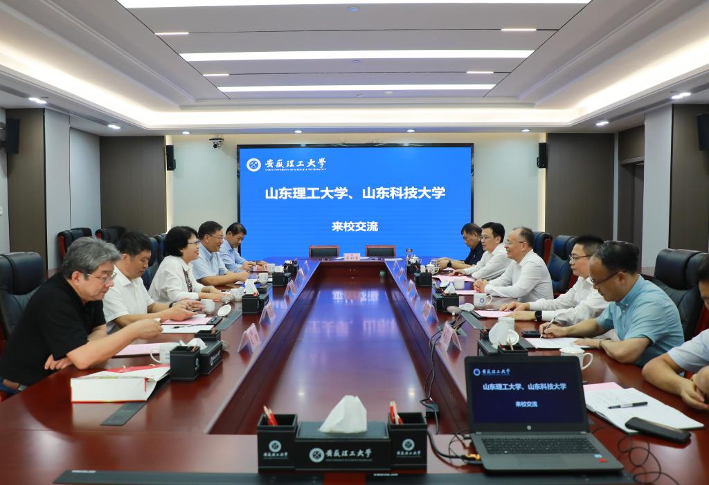 10月5日下午,学校与山东理工大学、山东科技大学战略合作协议签署仪式在党委办公楼213会议室举行,标志着皖鲁三所理工科特色高校携手开启协同发展新篇章。校党委书记郭永存,山东理工大学校长李玉霞,山东科技大学党委常委、副校长诸葛福民出席会议并讲话。校党委副书记、常务副校长余玉刚,校党委常委、副校长赵光明参加会议并代表学校分别与两校签约。会议由赵光明主持。