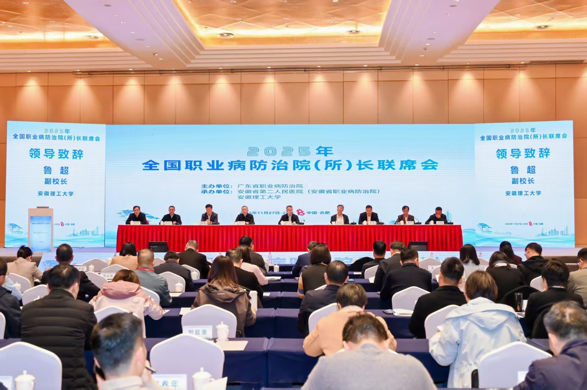 11月28日至29日,由广东省职业病防治院主办、安徽省第二人民医院和安徽理工大学共同承办的2025年全国职业病院(所)长联席会议在合肥隆重召开。国家卫生健康委员会职业健康司技术服务管理处处长彭广胜出席会议,国家卫生健康委职业安全卫生研究中心主任樊晶光,安徽省疾病预防控制局党组书记、局长、省卫生健康委员会党组成员、副主任(兼)刘志荣,中国疾病预防控制中心职业卫生与中毒控制所所长孙新,安徽省第二人民医院(安徽职业病防治院)党委书记丁文荣,国家辐射安全所副所长拓飞出席开幕式并致辞。校党委常委、副校长鲁超参加会议并致辞。大会开幕式由广东省职业病防治院院长胡世杰主持。