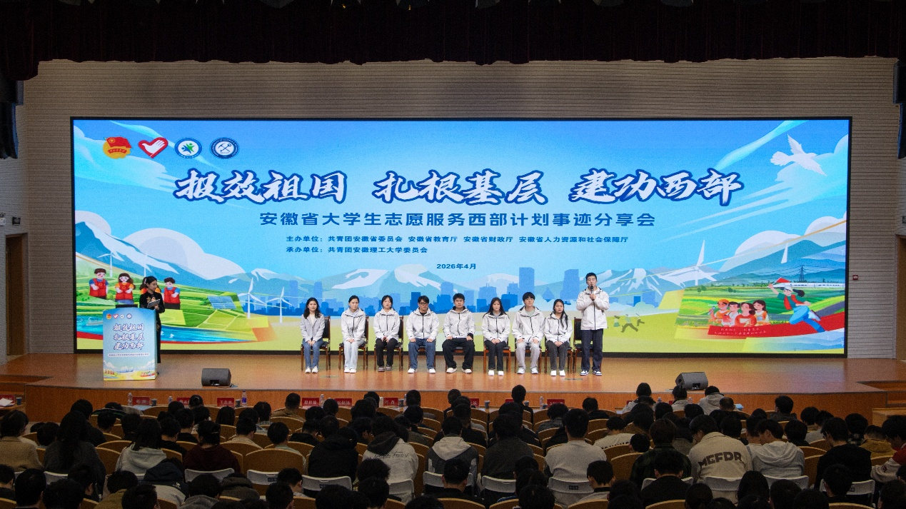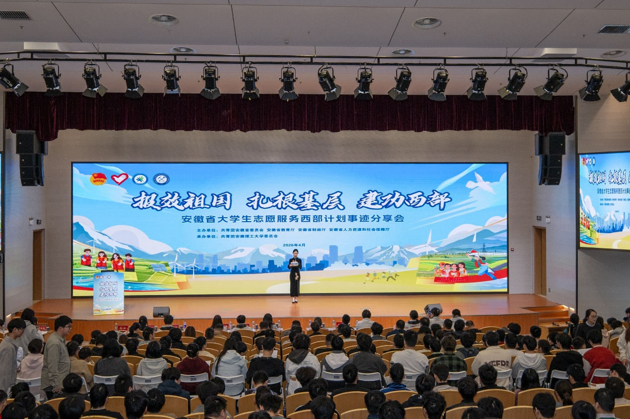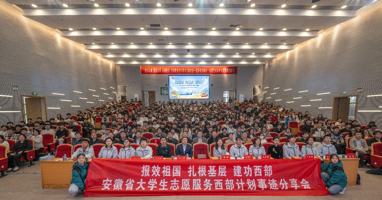为深入学习贯彻习近平总书记关于青年工作的重要思想,引导青年学子投身基层建功立业,4月13日下午,由共青团安徽省委员会、省教育厅、省财政厅、省人社厅联合主办,校团委承办的“报效祖国 扎根基层 建功西部”安徽省大学生志愿服务西部计划事迹分享会在我校举行。团省委学校部二级调研员汪文斌、校团委相关负责人、安徽省乡村振兴计划志愿者宣讲团成员及我校师生代表共计500余人参加了活动。