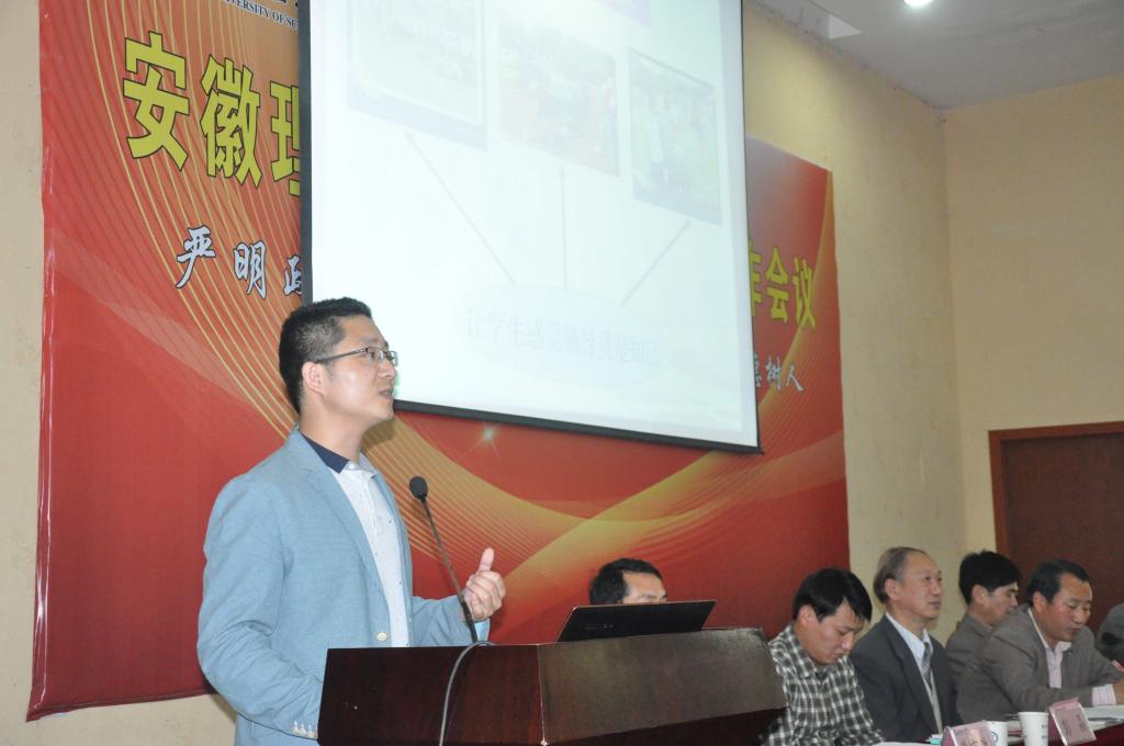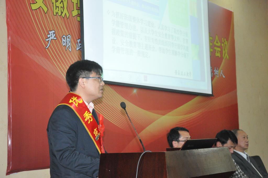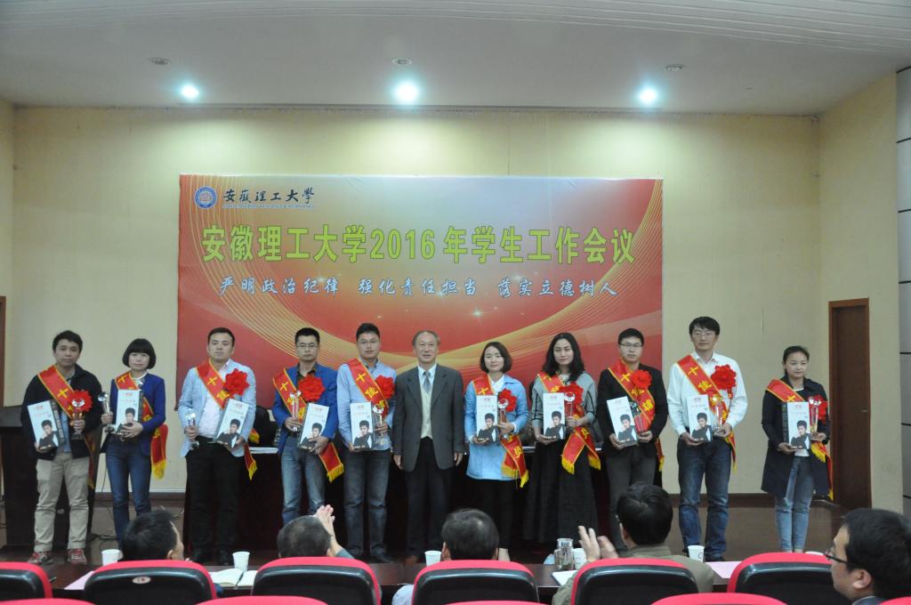 叶醒狮指出,2015年,全校学生工作以“十八大和十八届三中、四中、五中全会和习近平总书记系列重要讲话精神”为指引,紧紧围绕“立德树人”的根本任务,全面加强和改进大学生思想政治教育,全年学生思想积极健康向上,安全稳定得到切实保障;资助工作扎实开展,有效落实了“精确识别、精准资助、精细管理”的工作目标,全面贯彻了党和国家的民生政策;心理健康教育措施得力,方式恰当,春风化雨般滋养了学生心灵;队伍建设成果喜人,涌现出全国“辅导员年度人物”入围人选和安徽省“辅导员年度人物”、“安徽省优秀辅导员”等先进个人;理论研究再上台阶,成果上榜“全国高校辅导员工作优秀论文评选”及“首届全国高校网络宣传思想教育优秀作品推选”等平台,5个辅导员名师工作室被确定为2016—2018年安徽省高等教育振兴计划思想政治教育综合改革计划立项建设项目。上述成绩的取得,靠的是校党政的坚强领导,靠的是各部门、各教职员工的支持与配合,靠的是全体同学的理解与信任,对支持关心学生工作的各级领导、全体师生致以衷心感谢!
