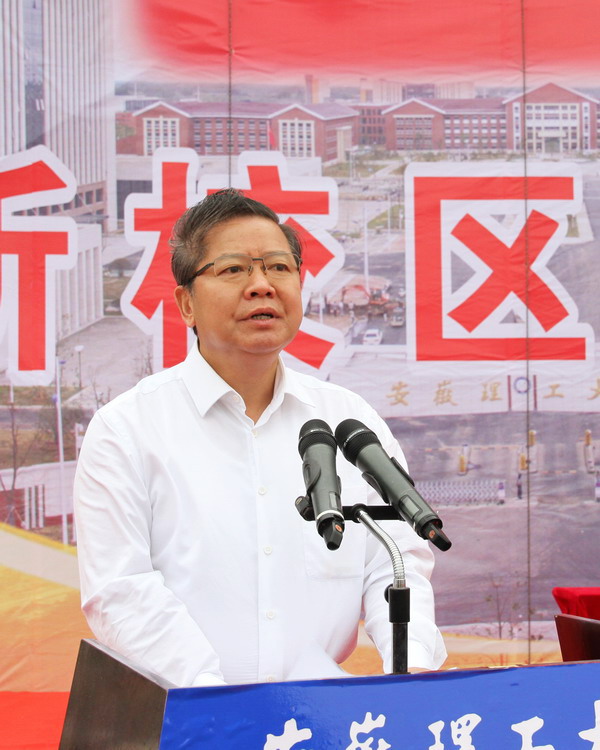 郭永存发表了热情洋溢的讲话。他代表学校党政感谢省委省政府的关怀,省委教育工委、省教育厅的支持,淮南市委市政府和以重点局为代表的相关局委办区乡镇所付出的巨大努力,感谢为新校区建设给予大力支持、服务保障的淮南市有关单位和设计、建设、施工单位的努力付出。同时感谢为新校区建设辛勤付出的一线同志们和全校广大教职工、离退休老同志以及海内外校友的理解和支持,感谢新校区的首批主人2016级新生的到来,为新校园赋予了生机和活力。