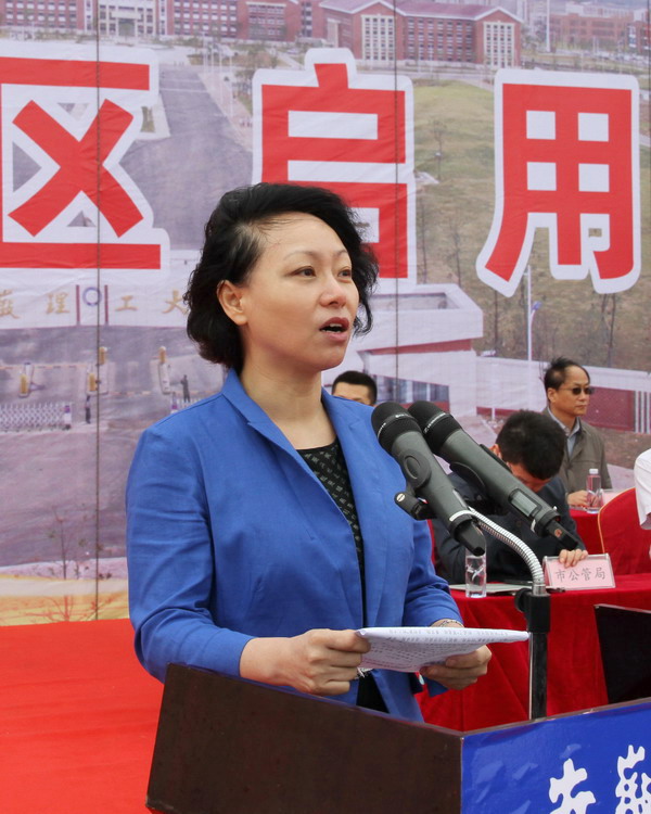 仪式上,王宏发表讲话。她代表中共淮南市委、淮南市人民政府,向莅临大会的各位领导、来宾表示最热烈欢迎,向长期以来关心支持淮南发展和新校区建设的各界朋友表示衷心感谢,向入住新校区的全体师生致以最美好的祝愿!她指出,安徽理工大学建校以来,与淮南风雨偕行,共同发展,硕果累累,为国家和社会培养了大批成就卓越的人才,创造了令人瞩目的学术成就,为国家和地方经济社会发展,特别是煤炭工业发展作出了重要贡献。安徽理工大学是淮南最为闪亮的一张名片。当前,淮南正处于转型创新、加快发展的重要战略机遇期,正在打造国家新型能源基地、资源型城市可持续发展示范区、国家创新型城市和全国重要的文化旅游目的地。安徽理工大学此时喜迁新址,拓展了发展新空间,登上了跨越新起点,迈入了大有作为的崭新阶段。王宏希望市校加强交流、互动协作、共建共享,合力涵养创新精神、打造创新平台、培育创新人才,持续汇聚更多的创新动力,共同推进创新型“三个强省”建设。她祝愿安徽理工大学根植淮南、胸怀天下,抢抓机遇、加快发展,早日建成“双一流”大学。