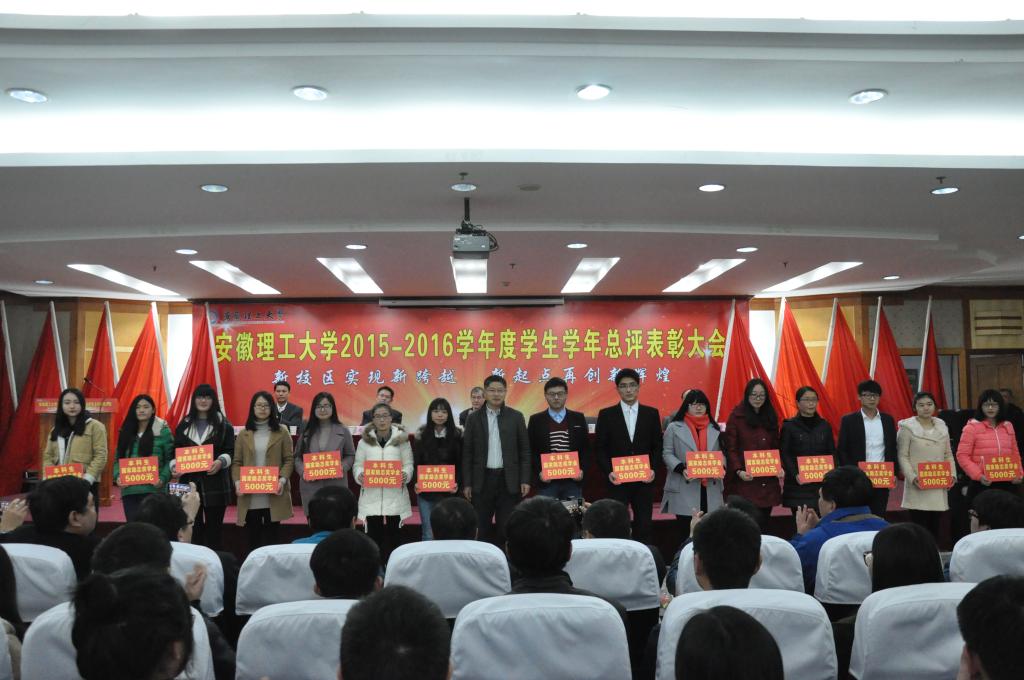 12月14日下午,学校在校本部教学楼九楼报告厅隆重举行2015-2016学年学生学年总评表彰大会。校长王其东、副校长孟祥瑞、校纪委书记周峰、副校长郑明东出席大会并为获表彰的先进集体或个人颁奖。