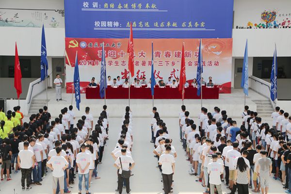 宫能平代表学校党政对今年暑期“三下乡”社会实践活动提出了四点要求:一是统筹协调,安全有效。各单位要结合地方需求,发挥专业优势,整合社会力量和资源,不断探索大学生暑期社会实践的新机制,活动中始终把安全工作放在首位,切实提高安全工作的预见性,做好自然灾害和突发事件的应急预案;二是端正态度,虚心学习。各团队要贴近群众,服务基层,虚心学习,细心观察,认真思考,了解国情社情和形势政策,回顾党的光辉历程,深刻感受各地经济社会发展的成就;三是不畏艰苦,团结合作。所有成员要坚持团队精神,密切配合,发扬百折不挠、不畏艰苦的精神,以饱满的热情、高昂的斗志为社会服务;四是加强宣传,推树典型。利用线上线下加强舆论宣传,营造良好氛围,积极对外展示学校师生乐于奉献的志愿精神和积极向上的精神面貌,进一步扩大安徽理工大学的知名度和美誉度。