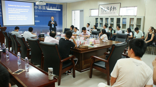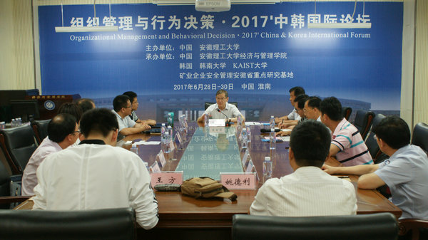 6月28日至29日,由安徽理工大学、韩国韩南大学、KAIST大学共同举办的组织管理与行为决策2017’中韩国际论坛在我校隆重召开。校长王其东教授出席论坛闭幕式。副校长孟祥瑞教授在会议期间热情接待了国内外专家学者。